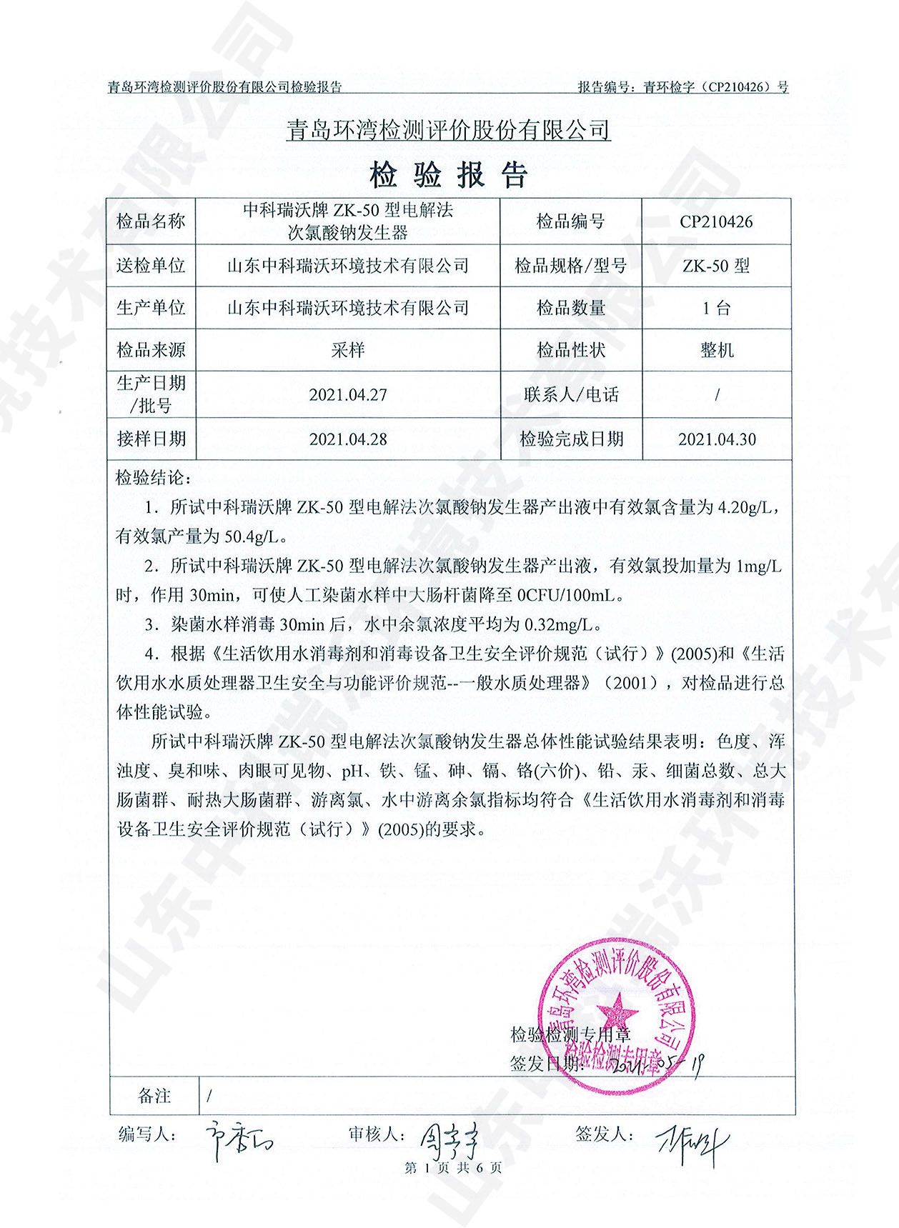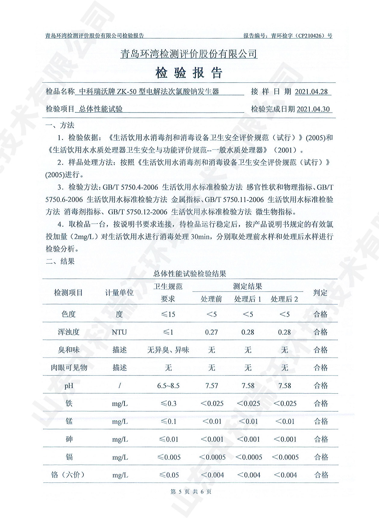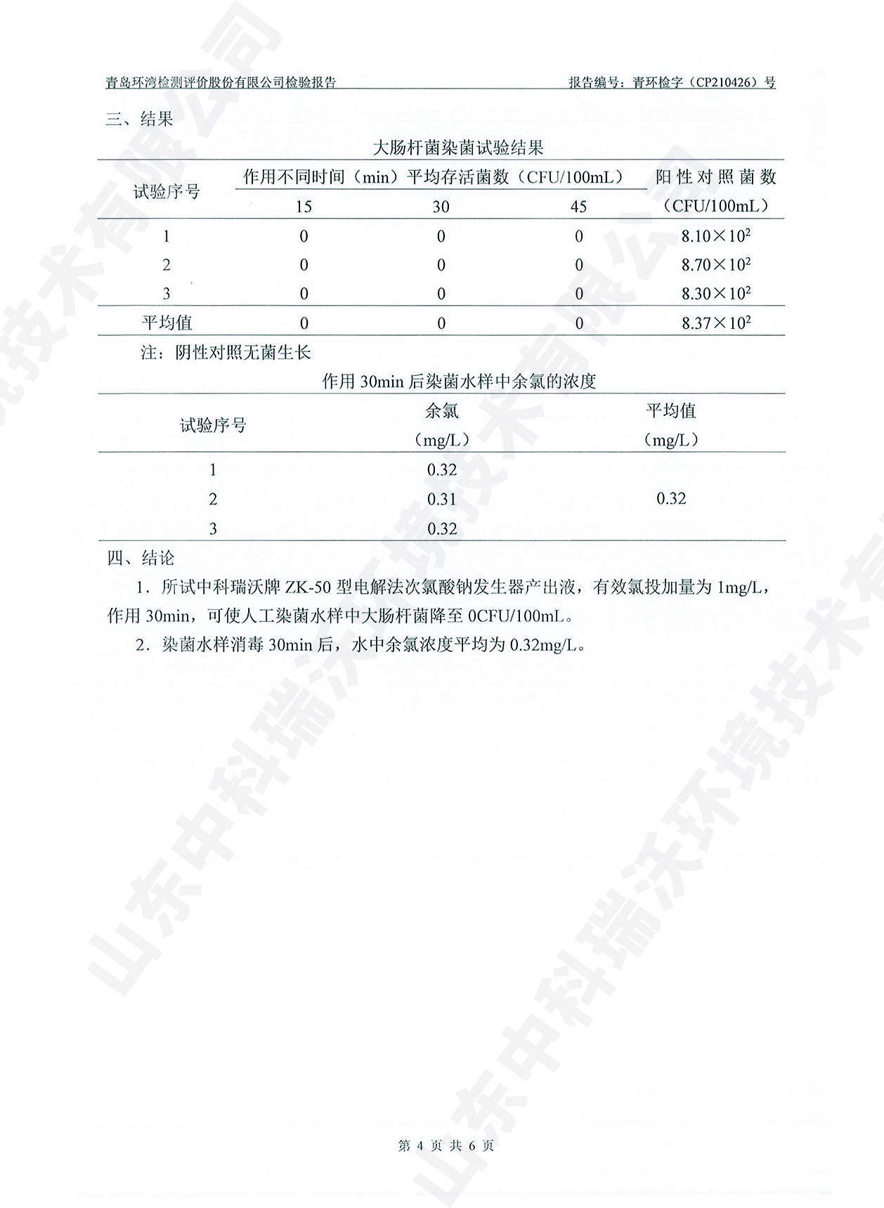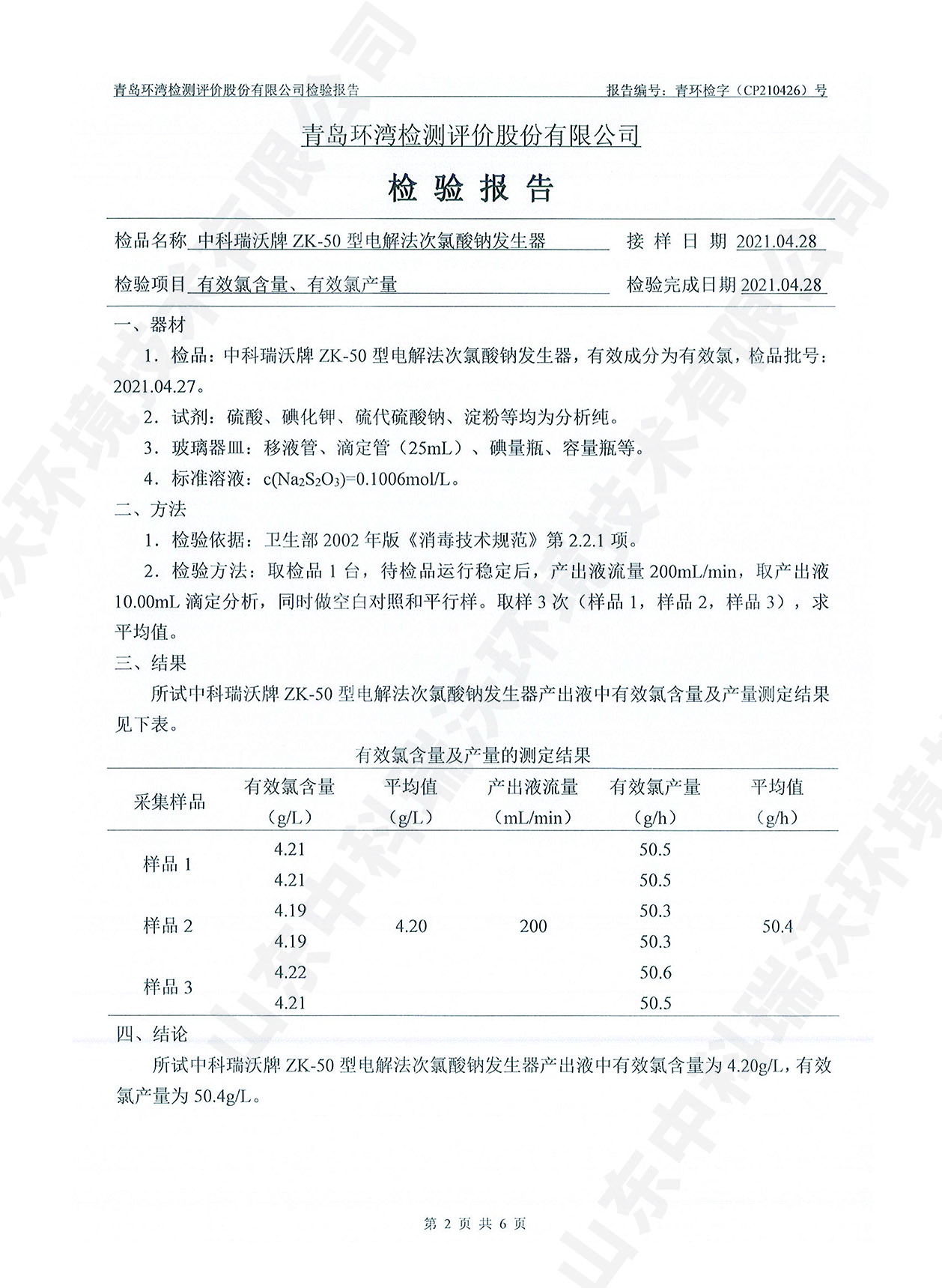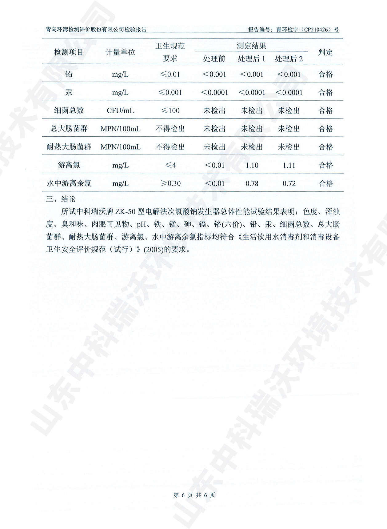 飲水消毒設備檢測報告~二氧化氯消毒